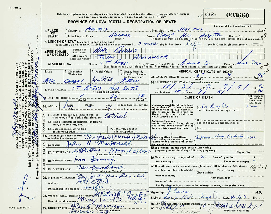 3. PRINT NAME OF DECEASED MacDonald, John Alexander