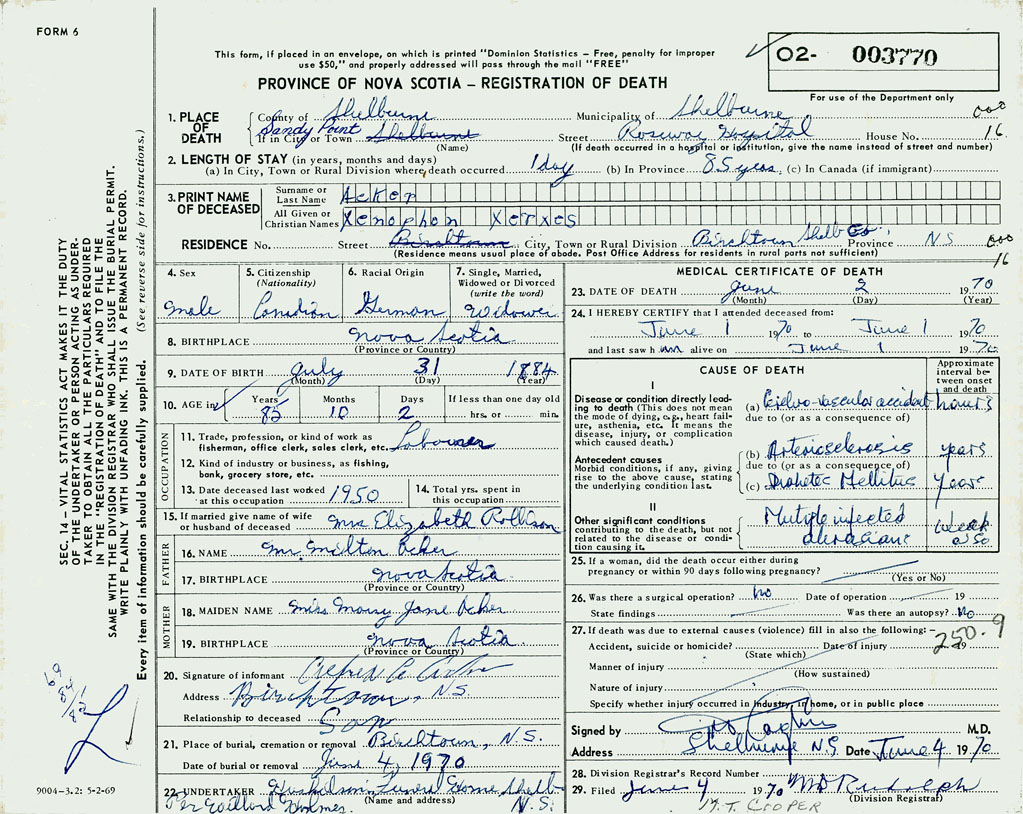 PROVINCE OF NOVA SCOTIA — REGISTRATION OF DEATH