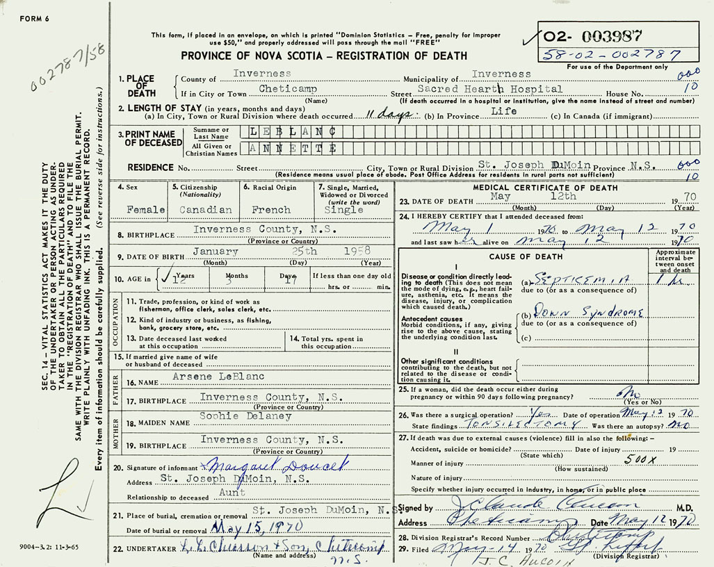 1. PLACE OF DEATH County of Inverness If in City or Town Cheticamp
