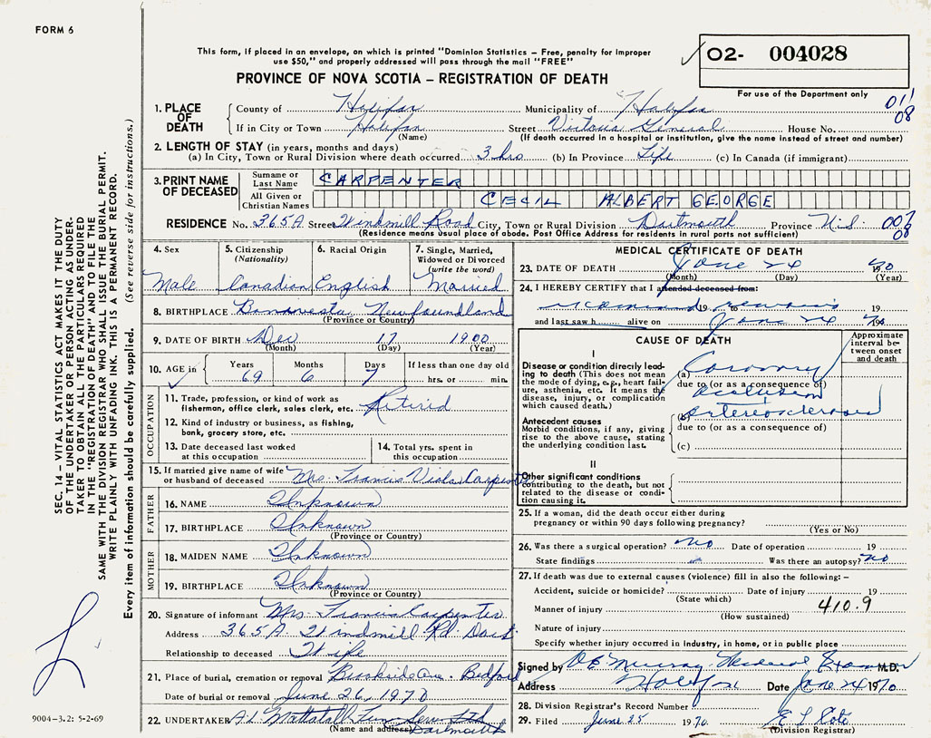 3. PRINT NAME OF DECEASED Carpenter, Cecil Albert George