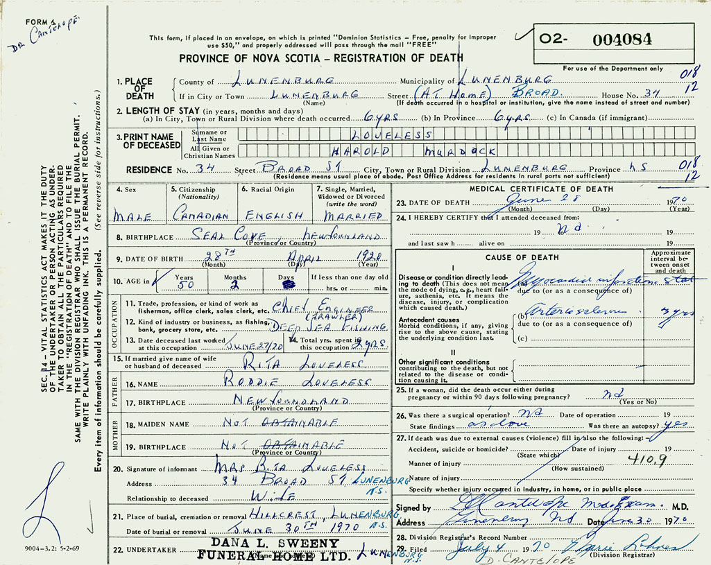 22. Undertaker Dana L. Sweeny Funeral Home LTD. Lunenburg