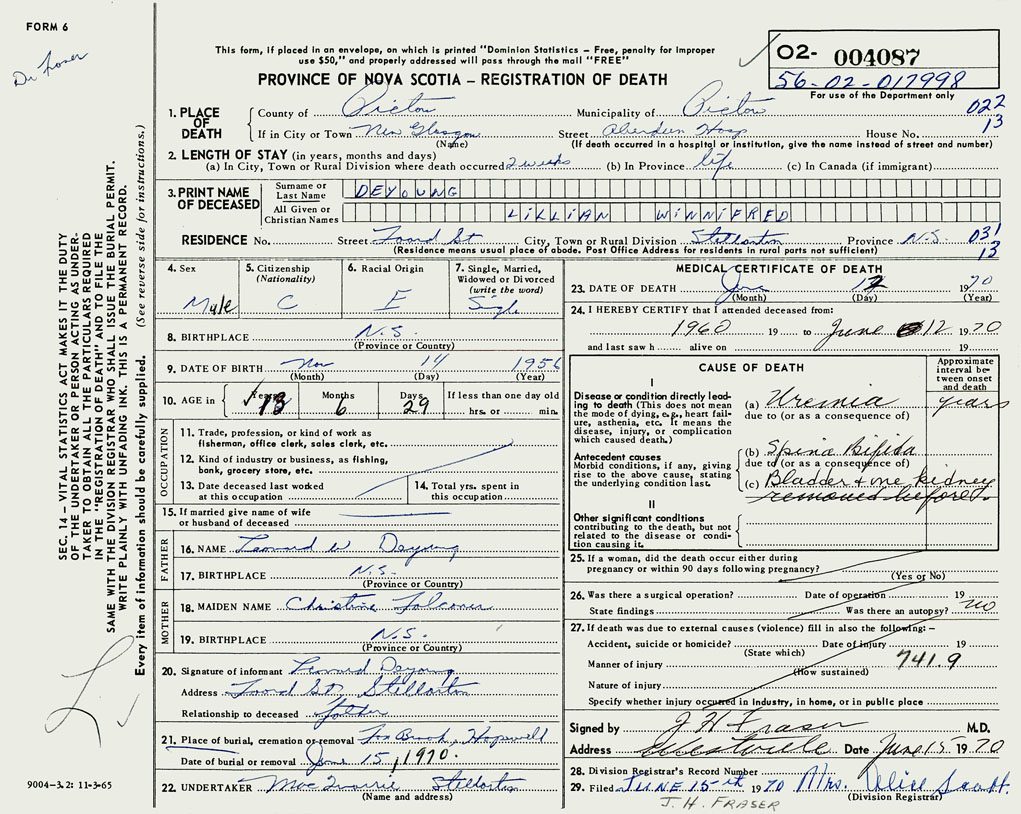 PROVINCE OF NOVA SCOTIA — REGISTRATION OF DEATH