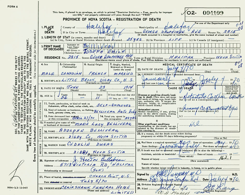 3. PRINT NAME OF DECEASED Belliveau, Joseph Emile