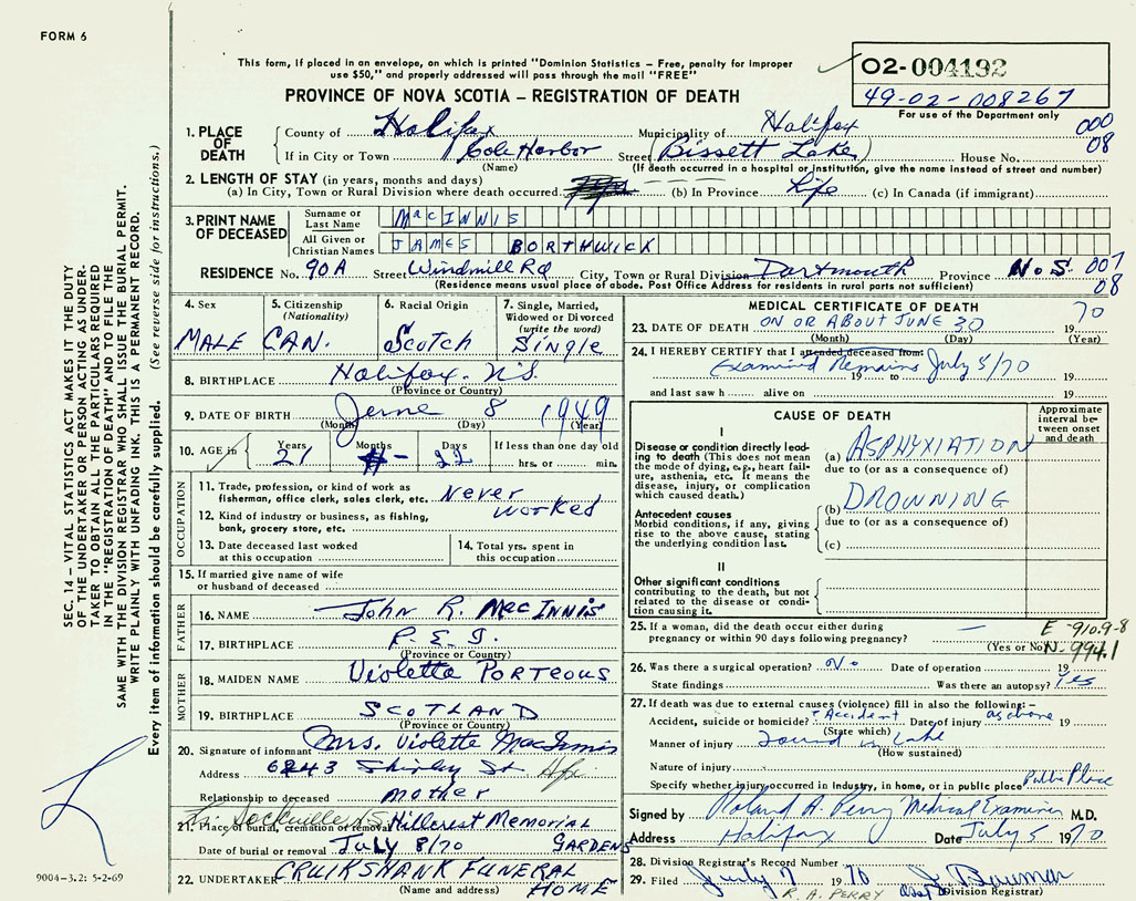 3. PRINT NAME OF DECEASED MacInnis, James Borthwick