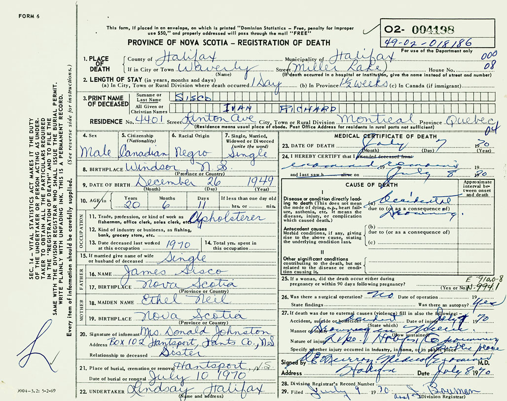 PROVINCE OF NOVA SCOTIA — REGISTRATION OF DEATH