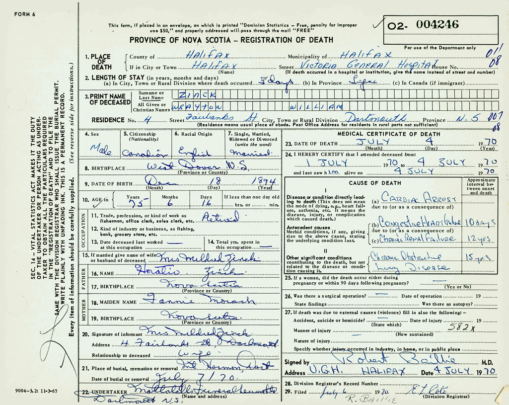 3. PRINT NAME OF DECEASED Zinck, Wrayton William