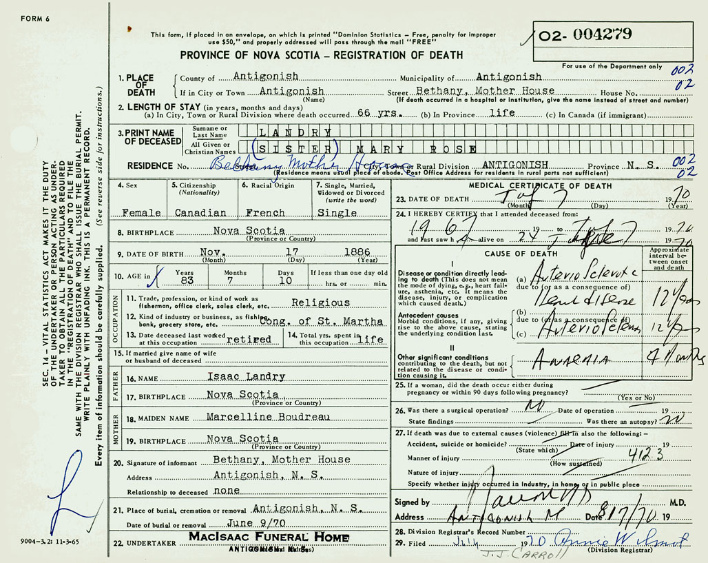 1. PLACE OF DEATH County of Antigonish If in City or Town Antigonish