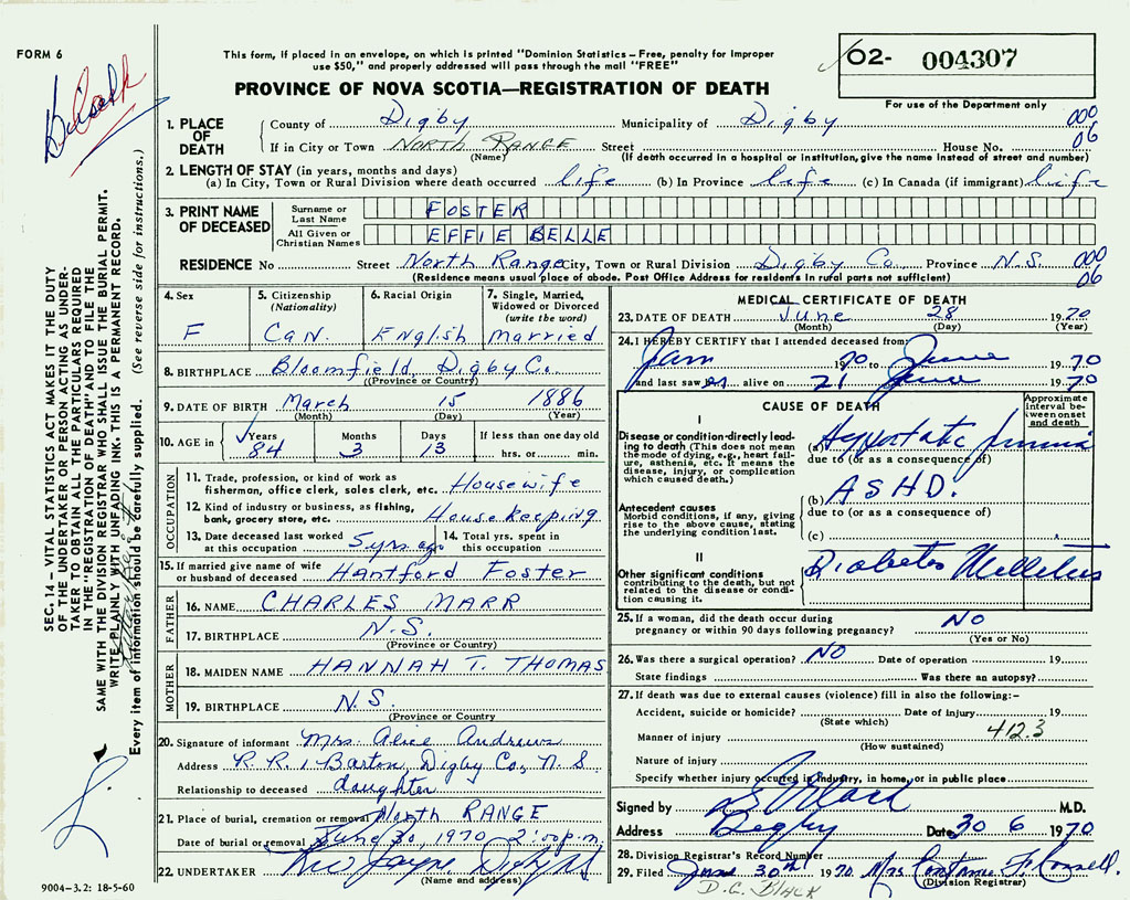 PROVINCE OF NOVA SCOTIA — REGISTRATION OF DEATH
