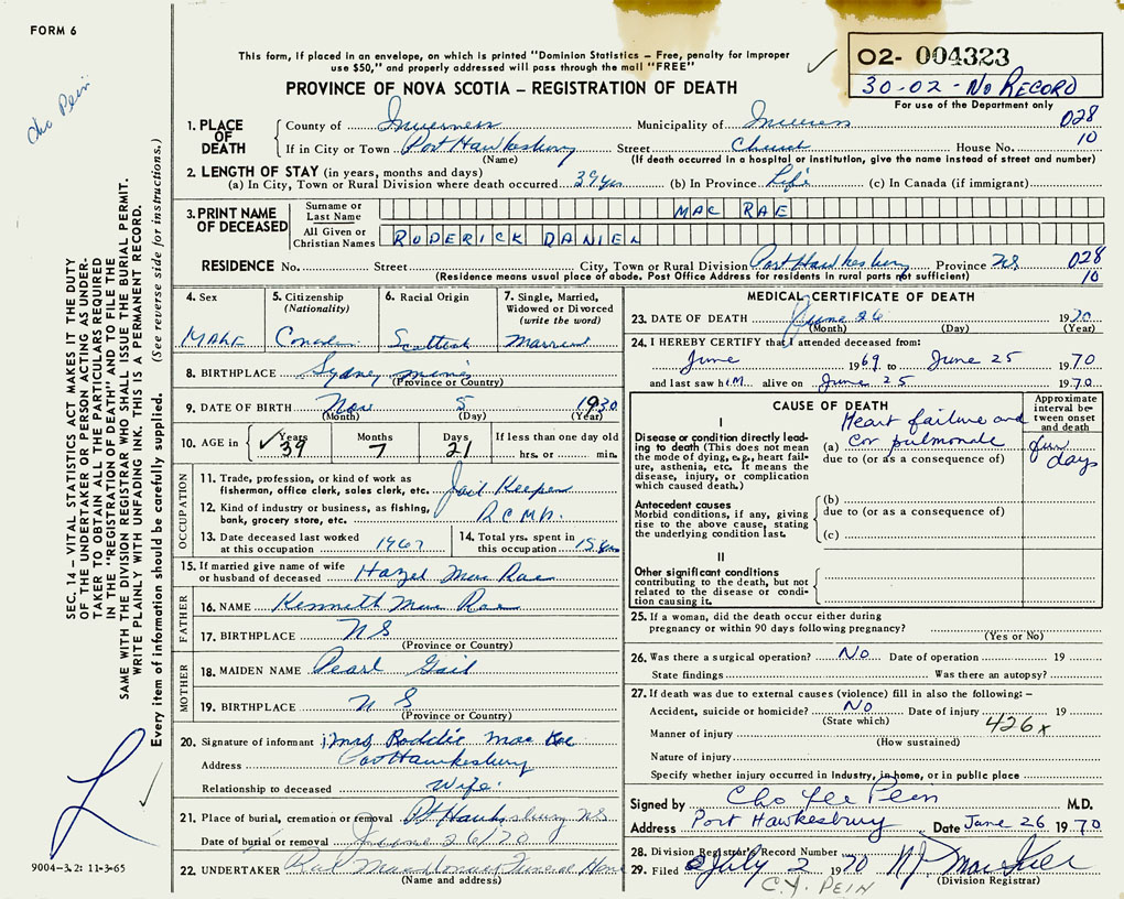 3. PRINT NAME OF DECEASED MacRae, Roderick Daniel