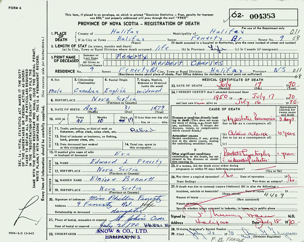 PROVINCE OF NOVA SCOTIA — REGISTRATION OF DEATH