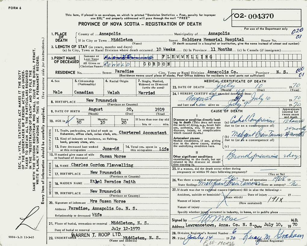 3. PRINT NAME OF DECEASED Flewwelling, Ronald Gordon