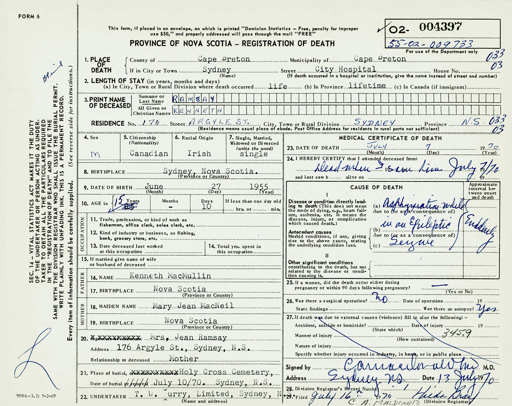 3. PRINT NAME OF DECEASED Ramsay, Kenneth