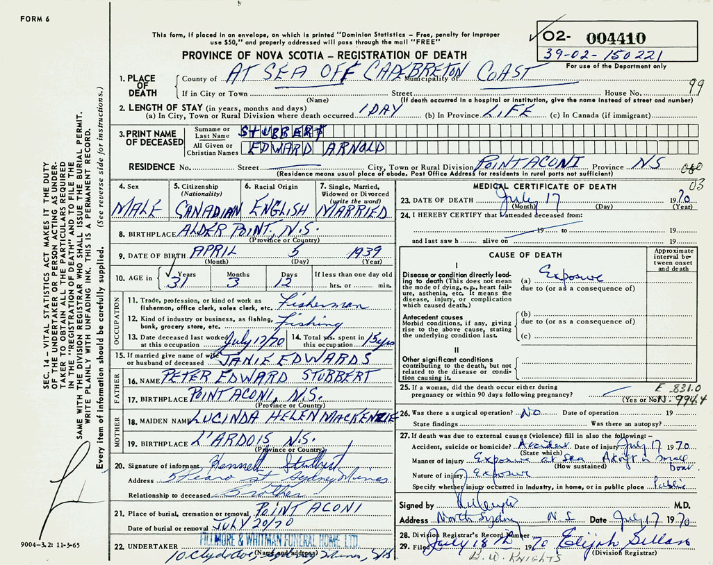 PROVINCE OF NOVA SCOTIA — REGISTRATION OF DEATH