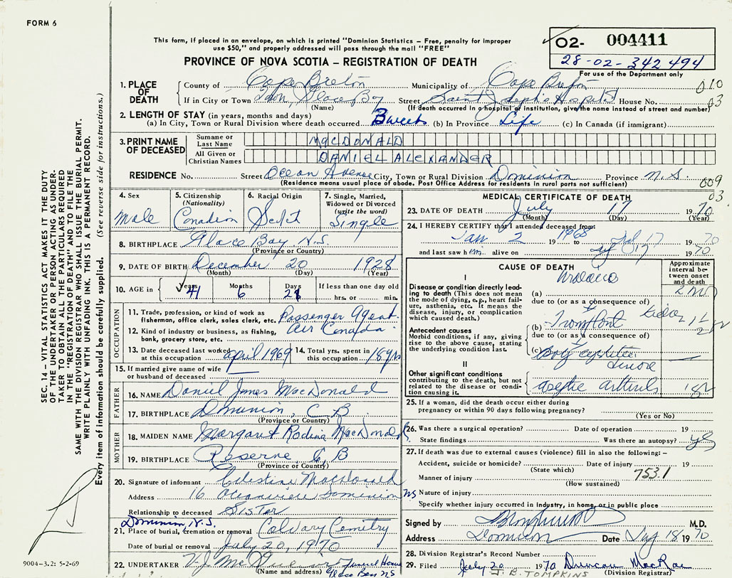 3. PRINT NAME OF DECEASED MacDonald, Daniel Alexander
