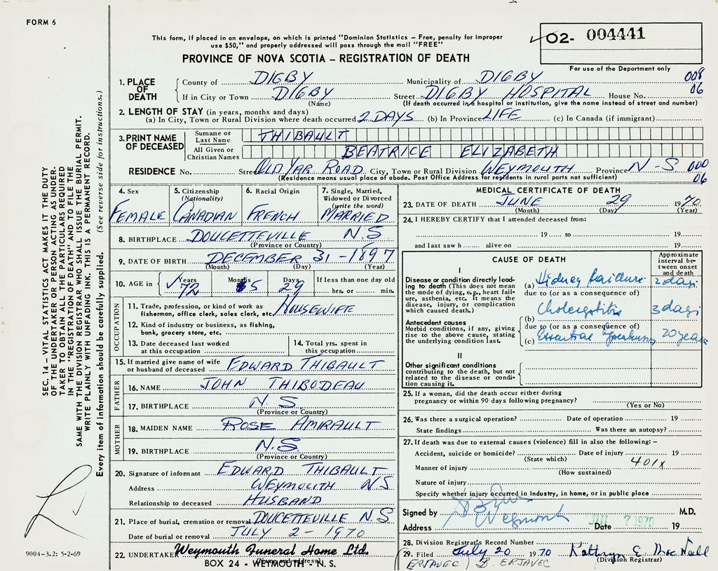 3. PRINT NAME OF DECEASED Thibault, Beatrice Elizabeth