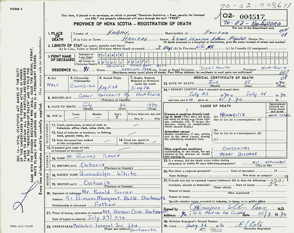 PROVINCE OF NOVA SCOTIA — REGISTRATION OF DEATH