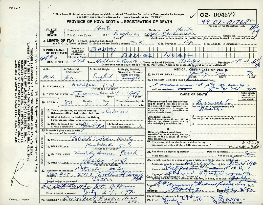 PROVINCE OF NOVA SCOTIA — REGISTRATION OF DEATH