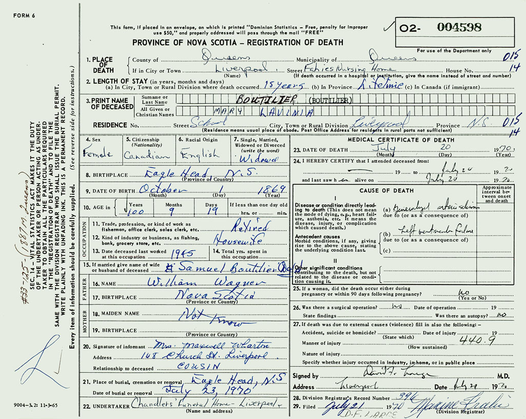 3. PRINT NAME OF DECEASED Boutilier, Mary Lavinia