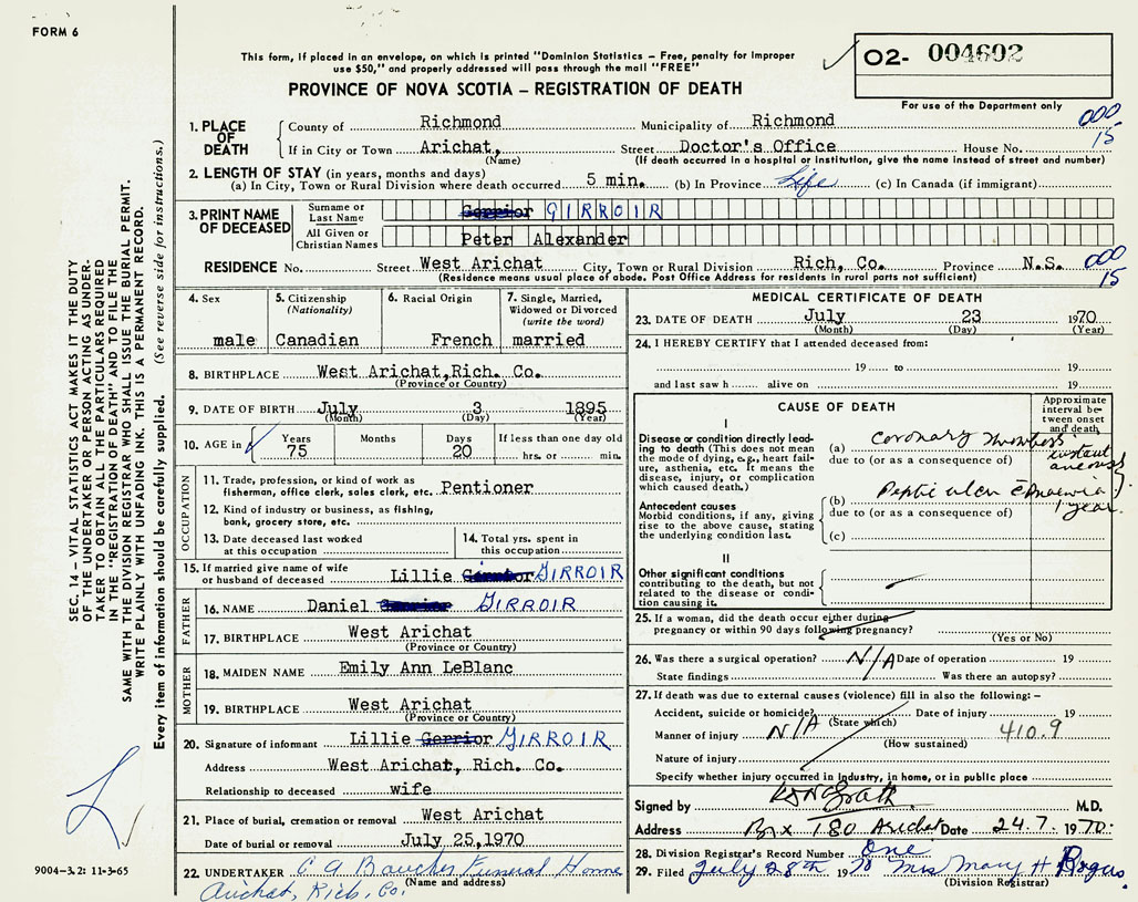 1. PLACE OF DEATH County of Richmond If in City or Town Arichat
