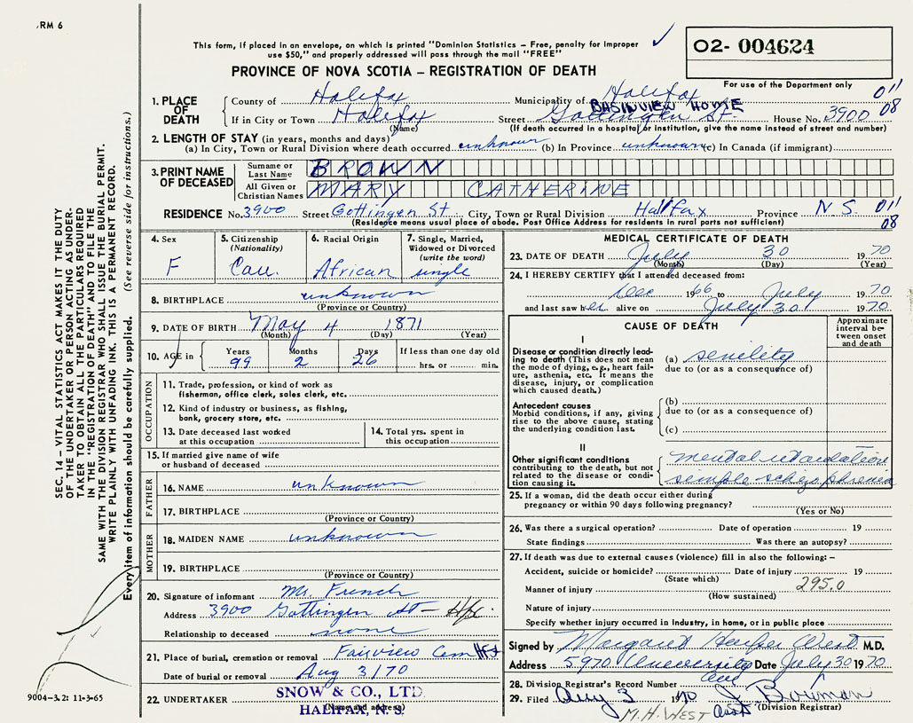 PROVINCE OF NOVA SCOTIA — REGISTRATION OF DEATH