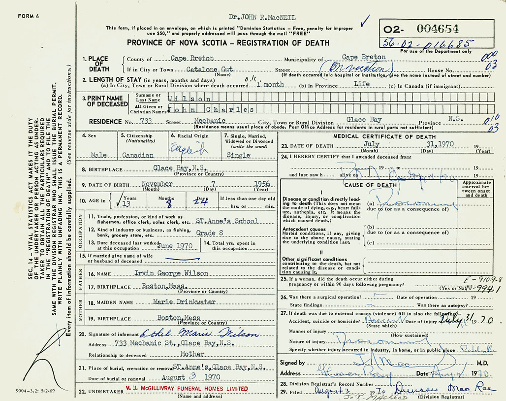 PROVINCE OF NOVA SCOTIA — REGISTRATION OF DEATH