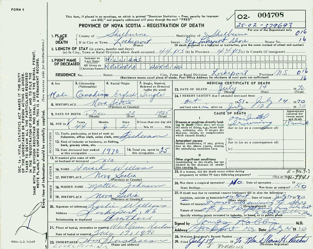 1. PLACE OF DEATH County of Shelburne If in City or Town Lockeport