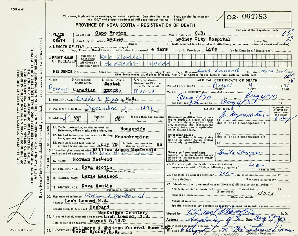 3. PRINT NAME OF DECEASED MacDonald, Margaret Sarah