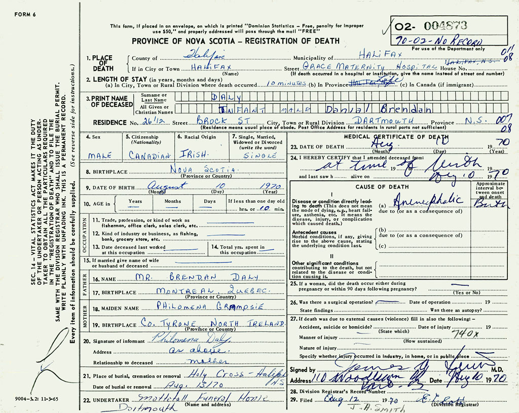3. PRINT NAME OF DECEASED Daly, Danial Brendan