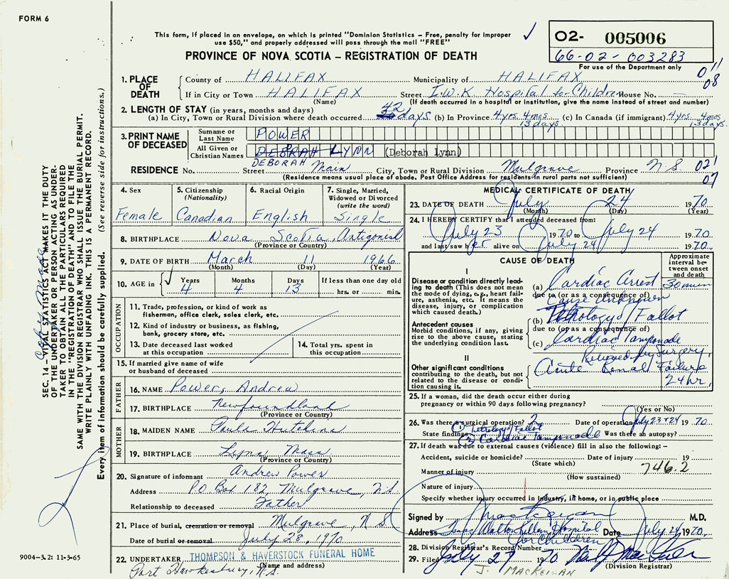 PROVINCE OF NOVA SCOTIA — REGISTRATION OF DEATH
