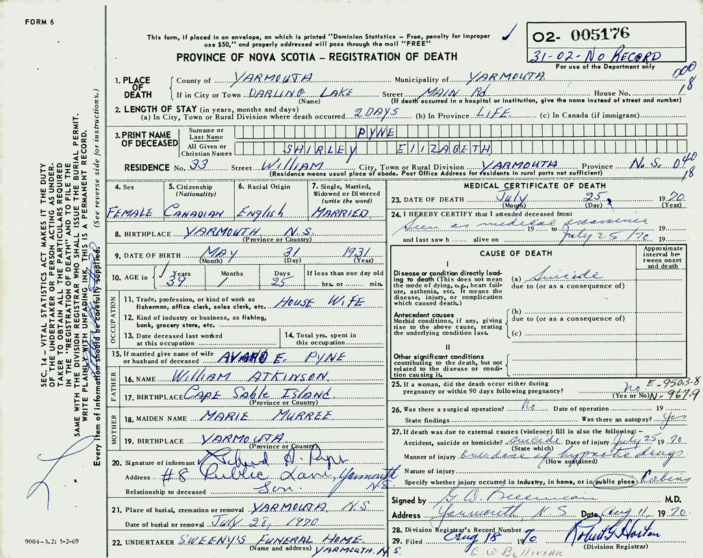 PROVINCE OF NOVA SCOTIA — REGISTRATION OF DEATH