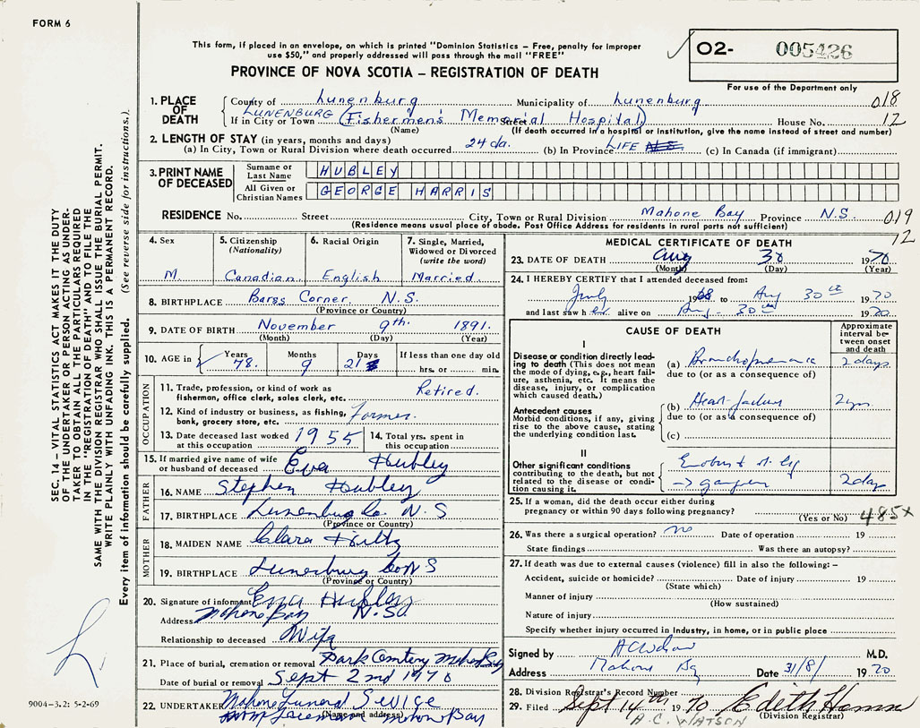 22. Undertaker Mahone Funeral Service, Mahone Bay
