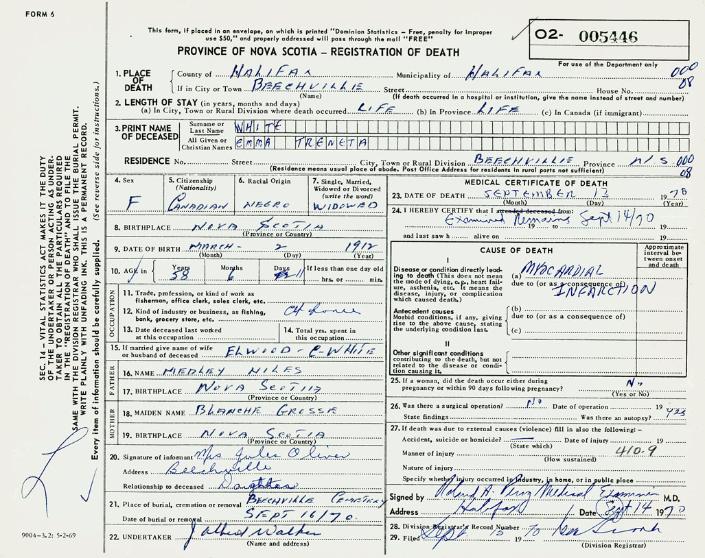 1. PLACE OF DEATH County of Halifax If in City or Town Beechville
