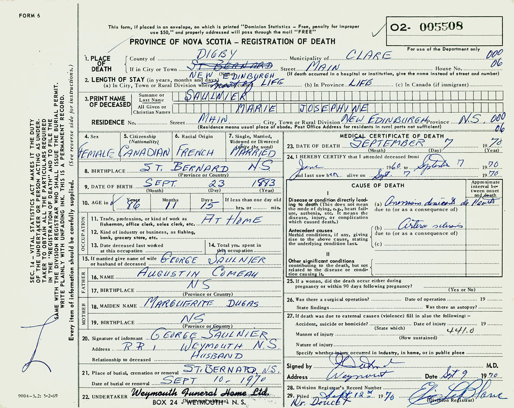 3. PRINT NAME OF DECEASED Saulnier, Marie Josephine