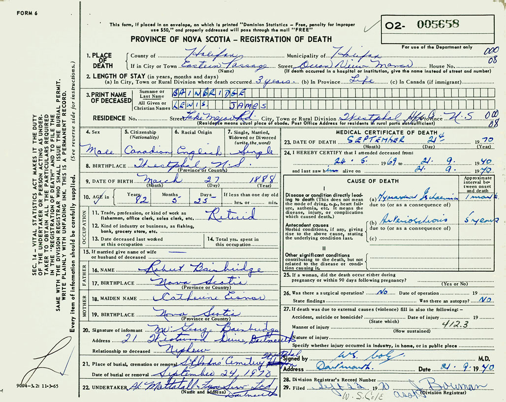 PROVINCE OF NOVA SCOTIA — REGISTRATION OF DEATH