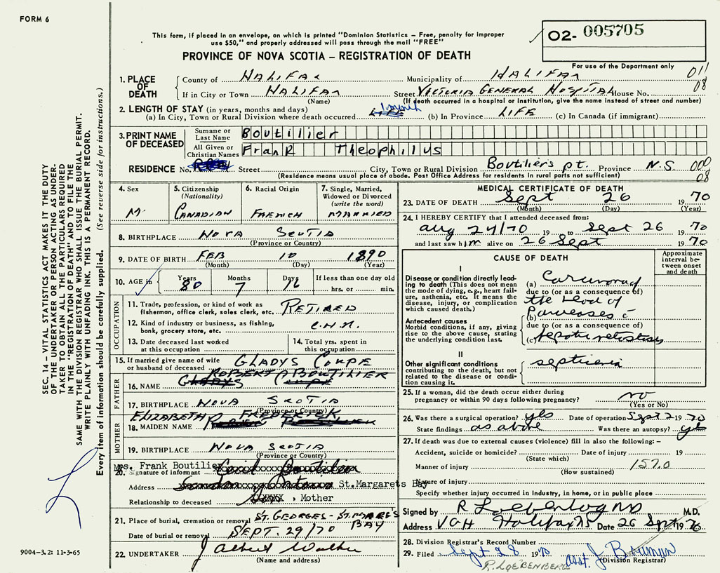 3. PRINT NAME OF DECEASED Boutilier, Frank Theophilus