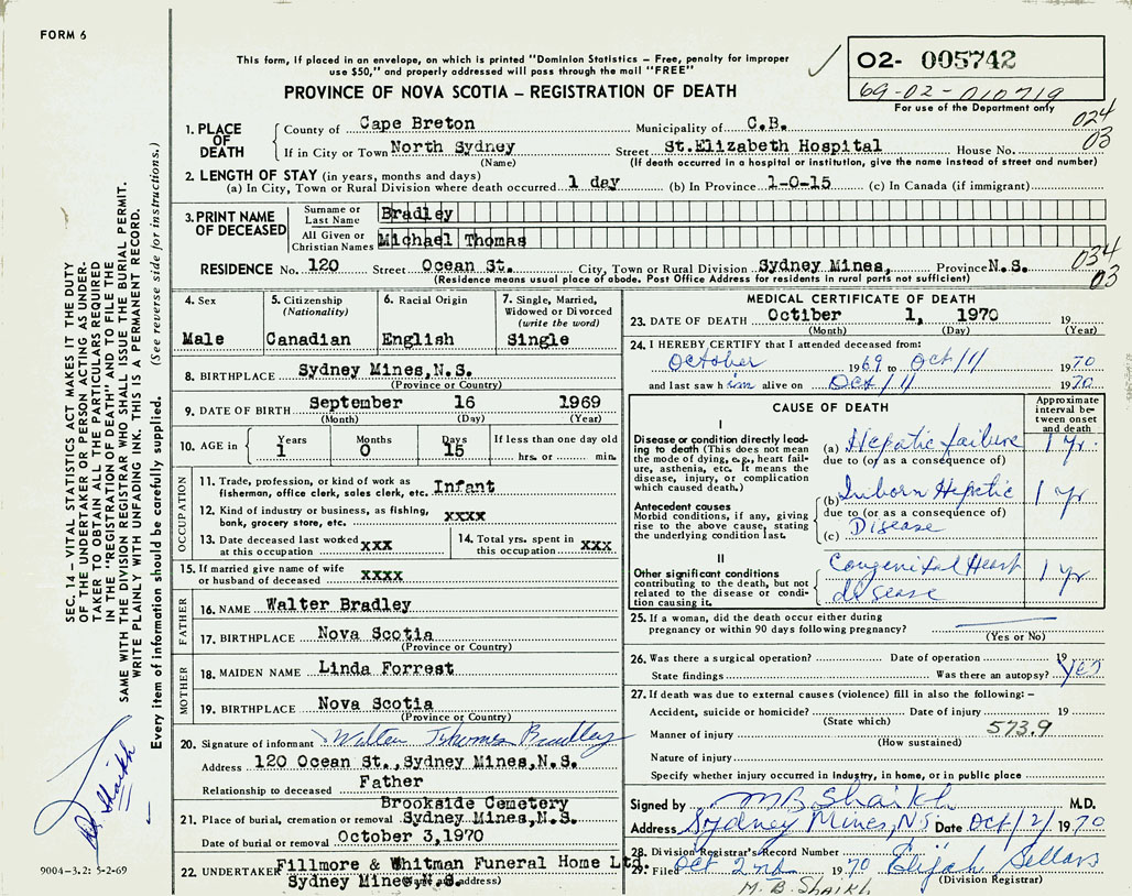 1. PLACE OF DEATH County of Cape Breton If in City or Town North Sydney