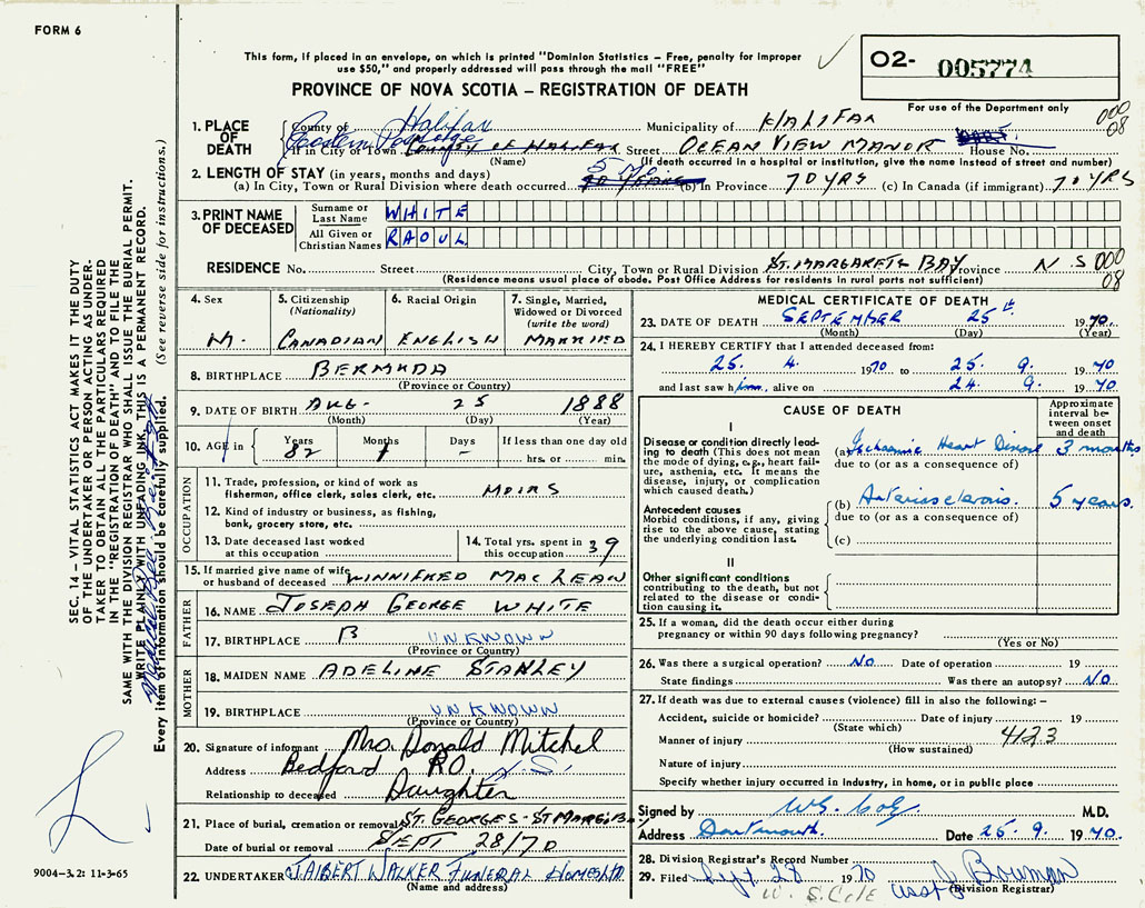 PROVINCE OF NOVA SCOTIA — REGISTRATION OF DEATH