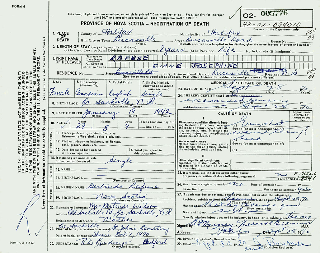 PROVINCE OF NOVA SCOTIA — REGISTRATION OF DEATH