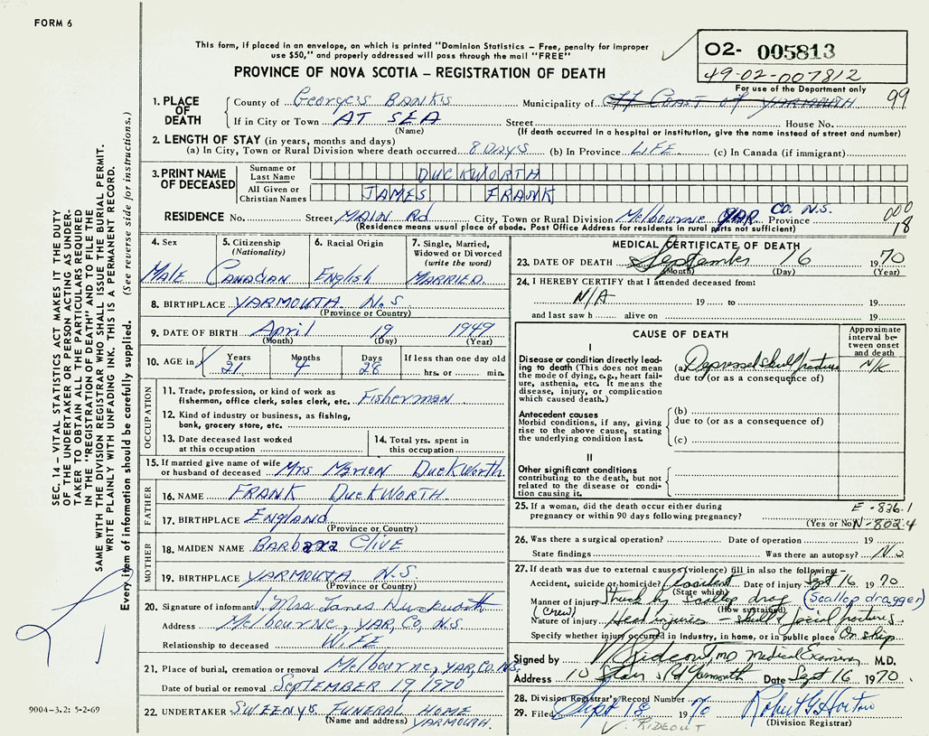 PROVINCE OF NOVA SCOTIA — REGISTRATION OF DEATH