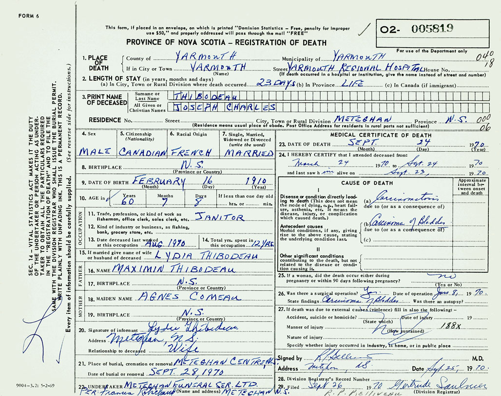 3. PRINT NAME OF DECEASED Thibodeau, Joseph Charles