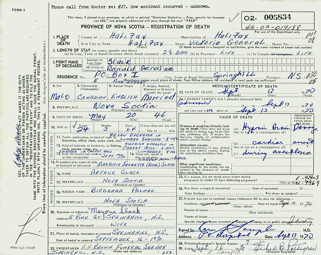PROVINCE OF NOVA SCOTIA — REGISTRATION OF DEATH