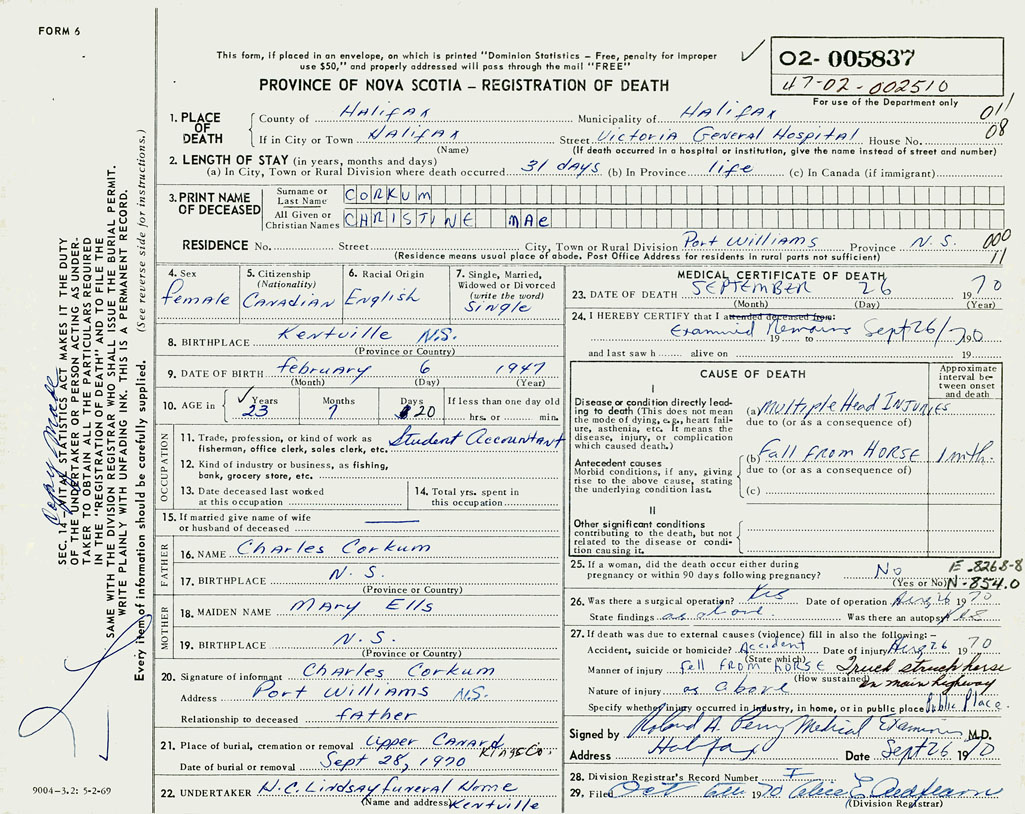 3. PRINT NAME OF DECEASED Corkum, Christine Mae