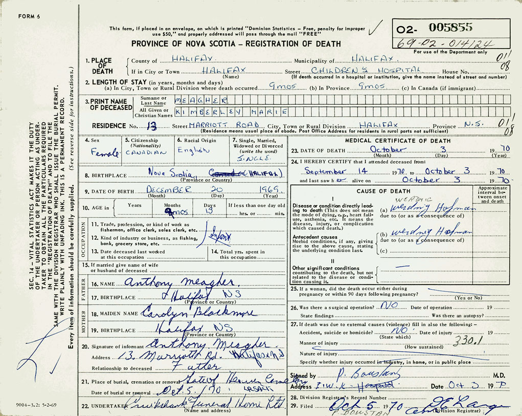 3. PRINT NAME OF DECEASED Meagher, Kimberley Marie