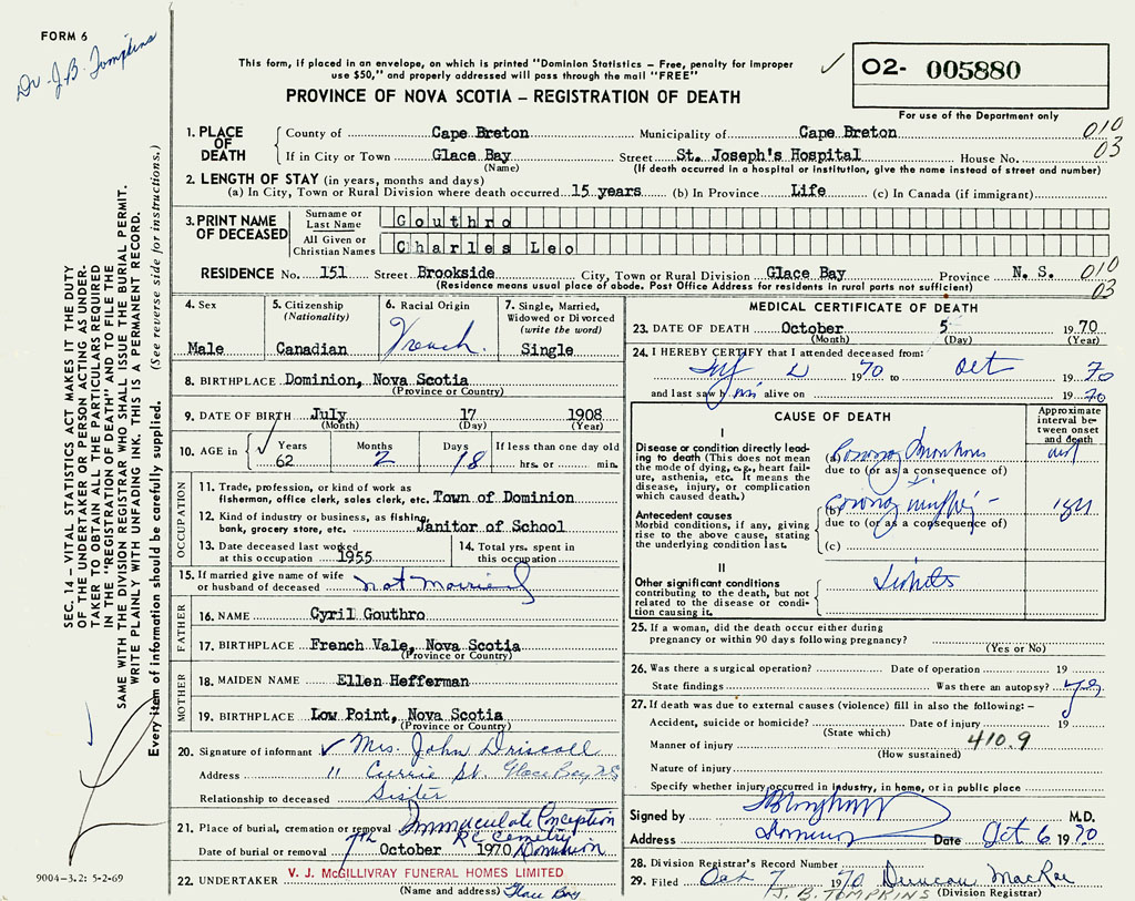 3. PRINT NAME OF DECEASED Gouthro, Charles Leo