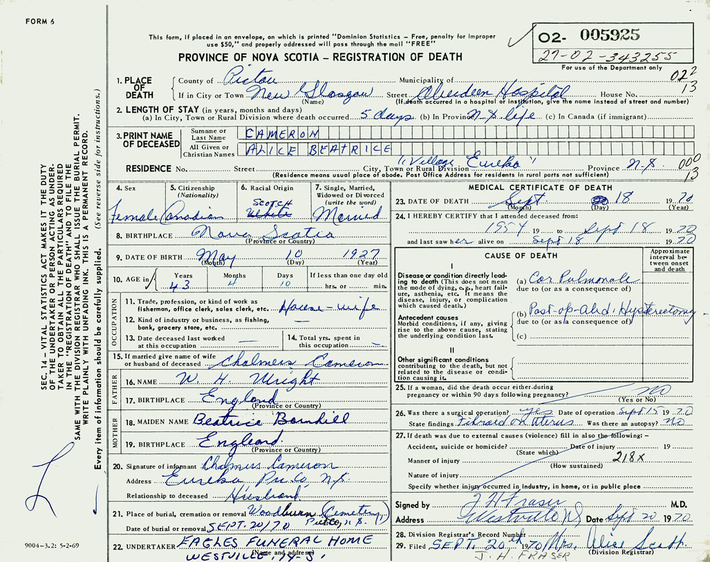 3. PRINT NAME OF DECEASED Cameron, Alice Beatric
