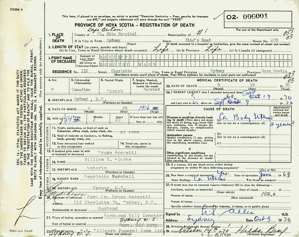 3. PRINT NAME OF DECEASED Rossetti, Dorothy Ward