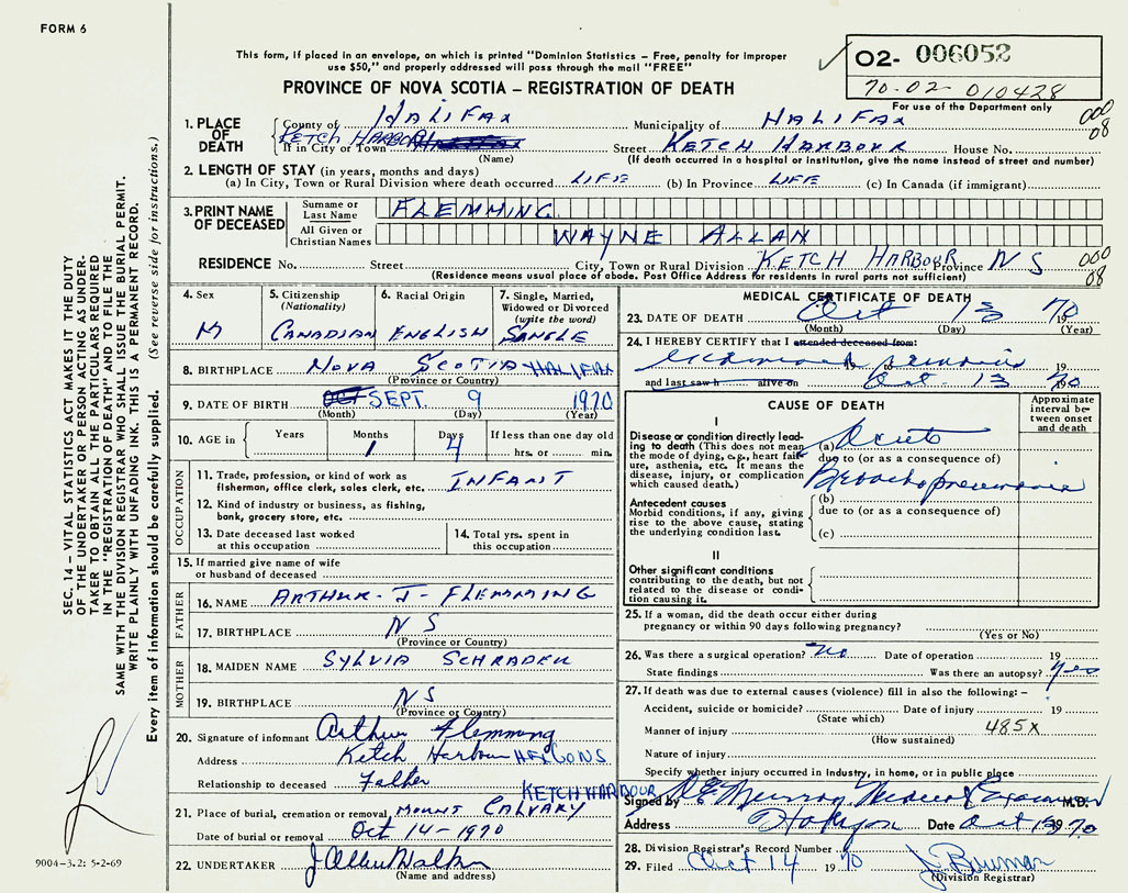 1. PLACE OF DEATH County of Halifax If in City or Town Ketch Harbour