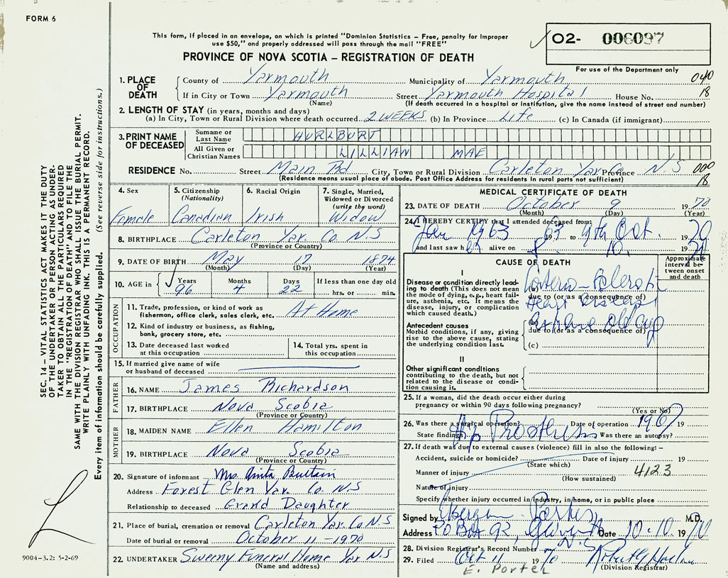 PROVINCE OF NOVA SCOTIA — REGISTRATION OF DEATH