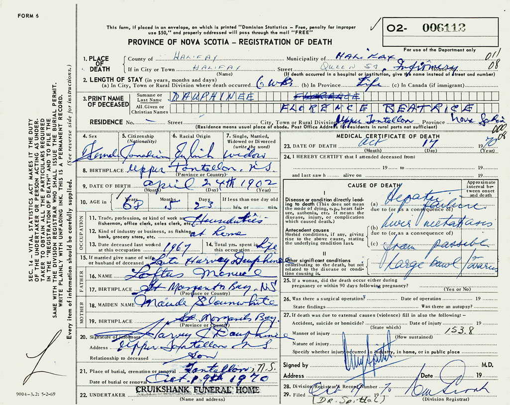 3. PRINT NAME OF DECEASED Dauphinee, Florence Beatrice