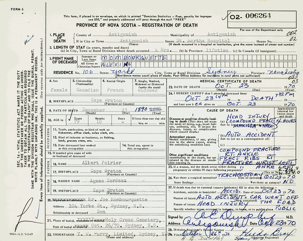 3. PRINT NAME OF DECEASED Mombourquette, Alexina